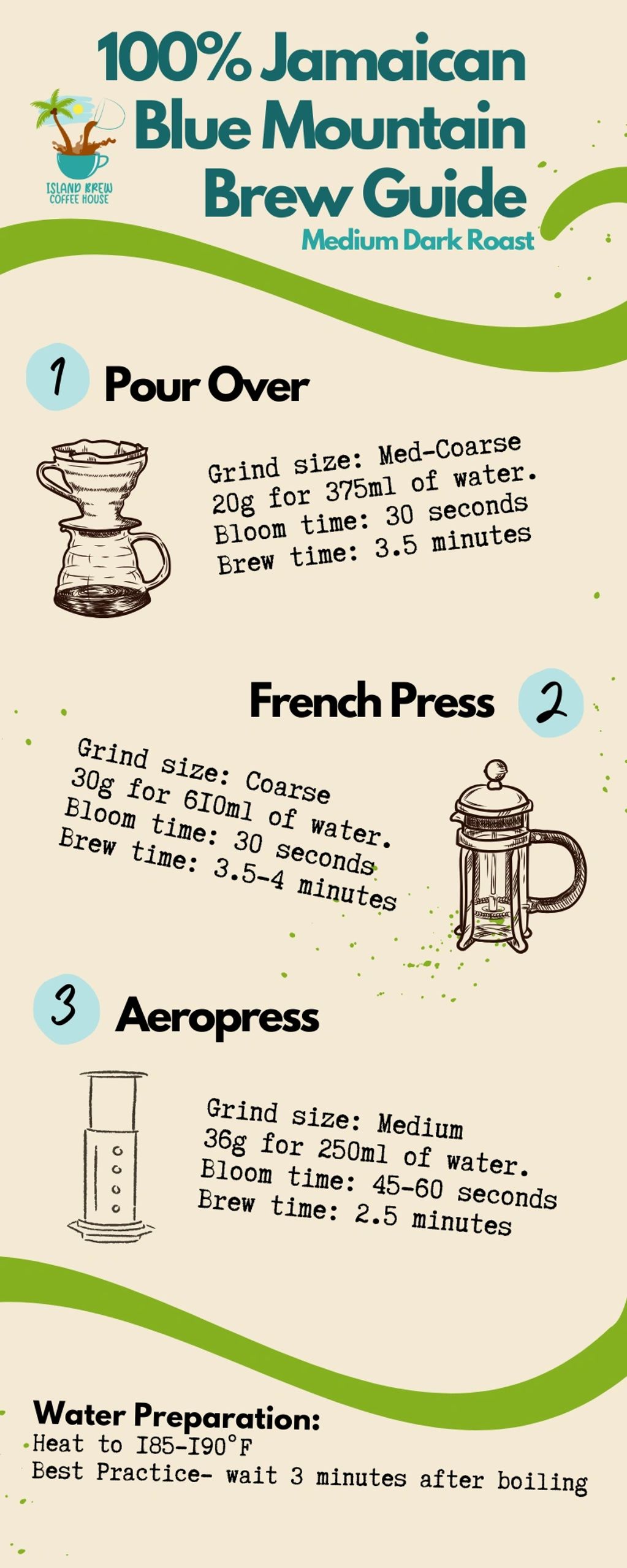 Brewing Instructions for Blue Escape (100% Jamaican Blue Mountain Coffee)